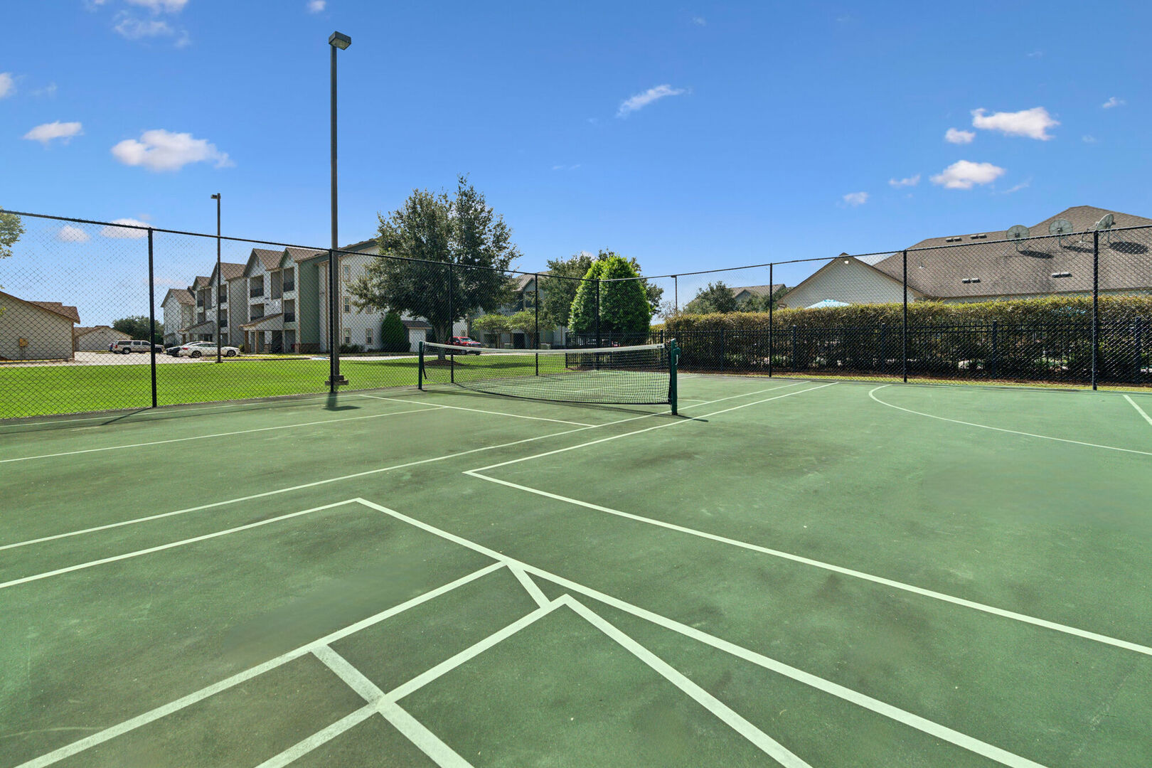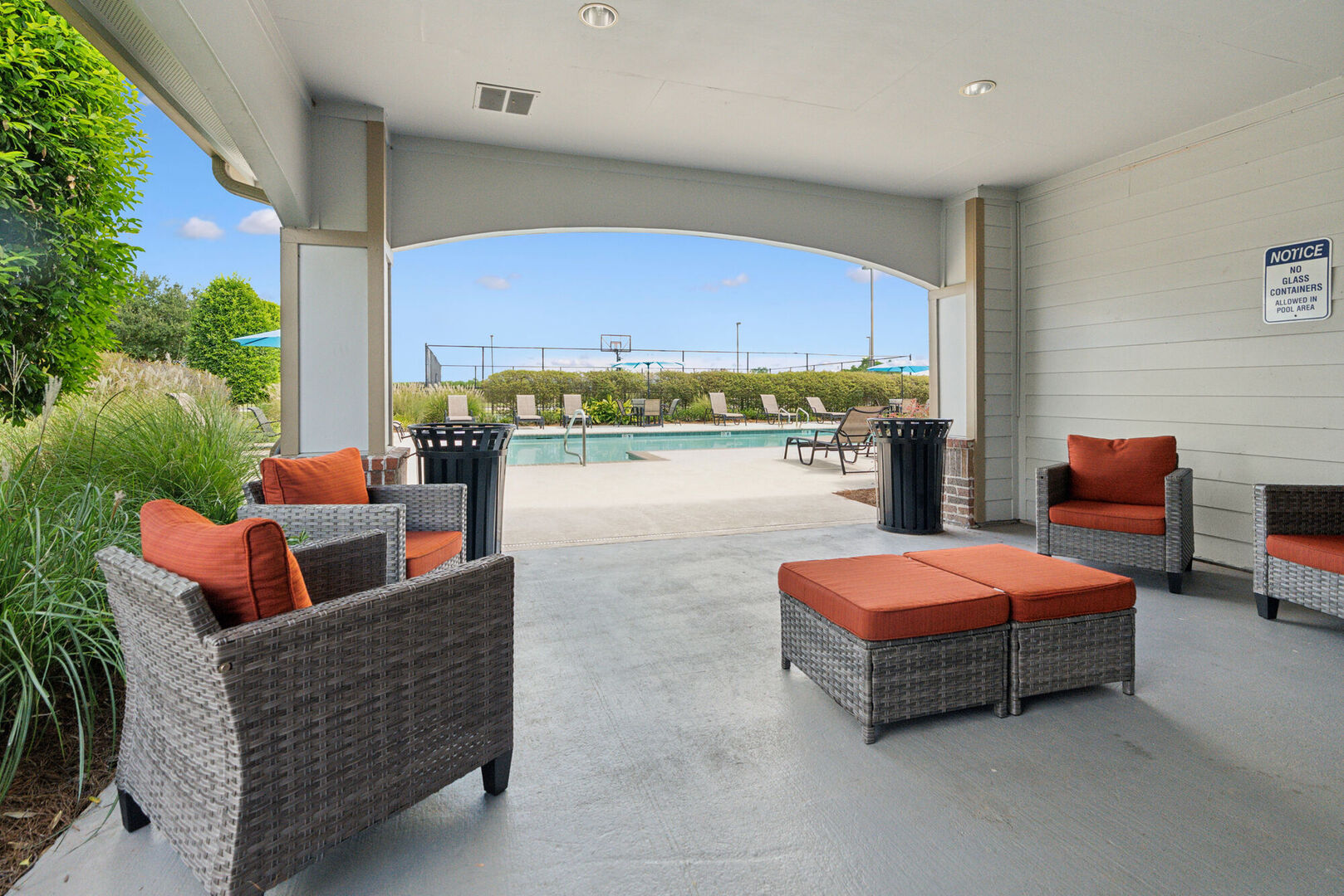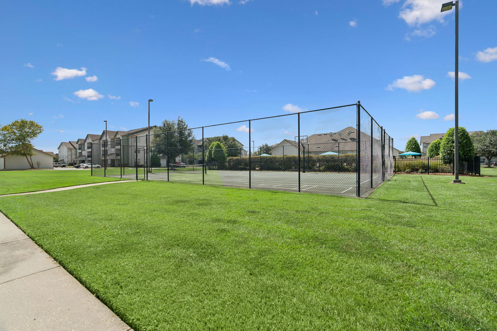 utilize the provided sports courts, resident clubhouse, sand volleyball pit and